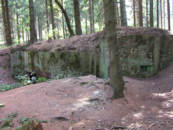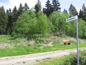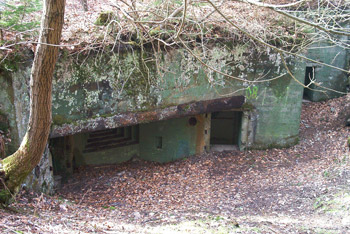 Bunker 139/40 ist ein Doppelgruppenunterstand mit angehangenem Kampfraum.Der Bunker befindet sich gut getarnt hinter der Bank |