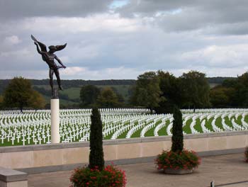 Der etwa 23 ha umfassende Friedhof wurde im September 1944 von der 1. US - Infanteriedivision der 1. US - Armee als Kriegsgräberstätte eingerichtet. Auf dem Friedhof in Henri Chapelle ruhen 7.989 gefalle US - Soldaten, von denen die meisten ihr Leben bei der Abwehr der deutschen Gegenoffensive in den Ardennen oder beim Vorstoß nach Deutschland hinein im Herbst und Winter 1944 und im Frühjahr 1945 liesen.