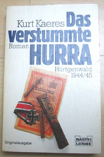 Kurt Kaeres, Das verstummte Hurra, Hürtgenwald 1944/45 Gustav Lübbe Verlag GmbH, Bergisch Gladbach, 1985 War es Schicksal oder Zufall, die Walter Morras nach vierzig Jahren wieder in die Nordeifel führten - an die Plätze der deutschen Abwehrfront im Herbst und Winter 1944/45 ? Dies ist seine Geschichte und die zweier Einheiten, einer deutschen und einer amerikanischen, die durch die Hölle gingen - gleichzeitig ist es die Geschichte eines Waldes, in dem das kampfermutigende "Hurra" verstummte. |