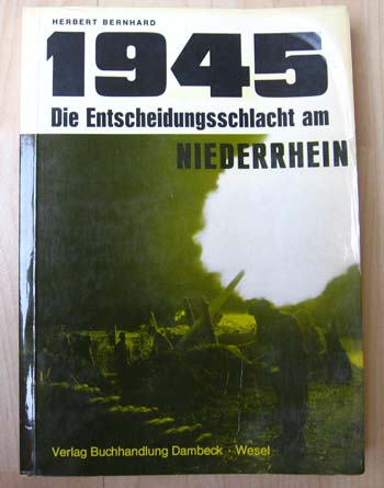 Herbert Bernhard, Die Entscheidungsschlacht am Niederrhein 1945 Verlag Buchhandlung Dambeck, Wesel 1976 Dieses Buch ist die bisher umfassendste Darstellung der Kriegsereignisse 1945 am Niederrhein. Es beginnt mit einem Rückblick auf die Luftlandung bei Arnheim mit dem Sturm der Alliierten auf den Klever Reichswald, bezieht die weiteren Kämpfe am linken Niederrhein ein und fährt mit einer einzigartigen Schilderung der britisch-amerikanischen Rheinüberquerung zwischen Duisburg und Emmerich fort. Den Abschluß bildet die Eroberung des rechten Niederrheins. |