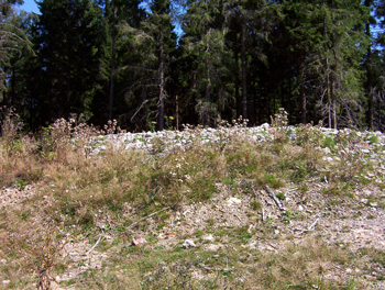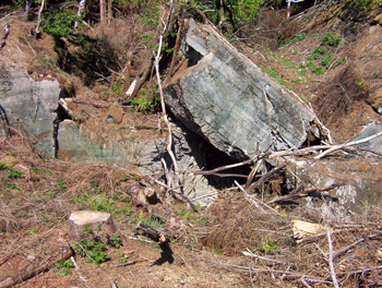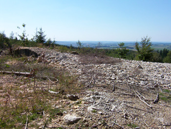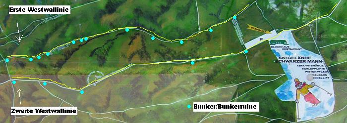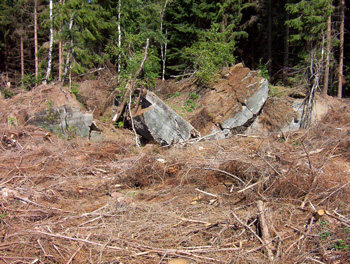 Bunkerruinen und zertrümmerte Bunker in der Schneeifel, im Bereich "Schwarzer Mann" |