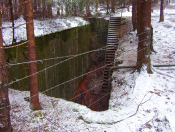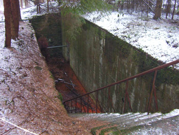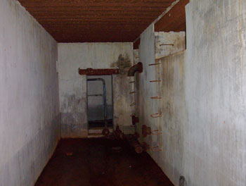 Der Vorraum des Bunkers, rechts die Steigeisen zu den Öffnungen der Wasserbehälter